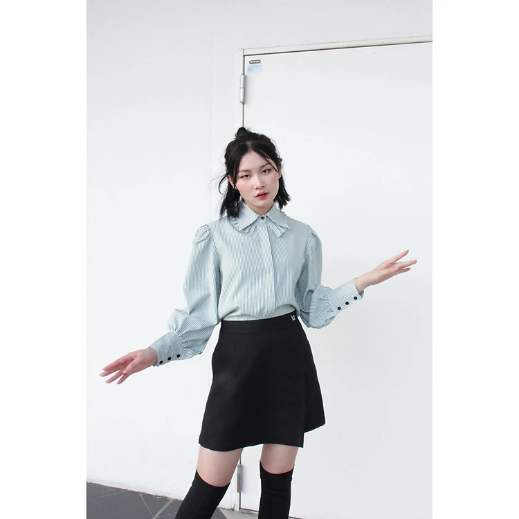 LAAS Somi tay phòng sọc xanh dịu dàng thanh lịch nữ tính