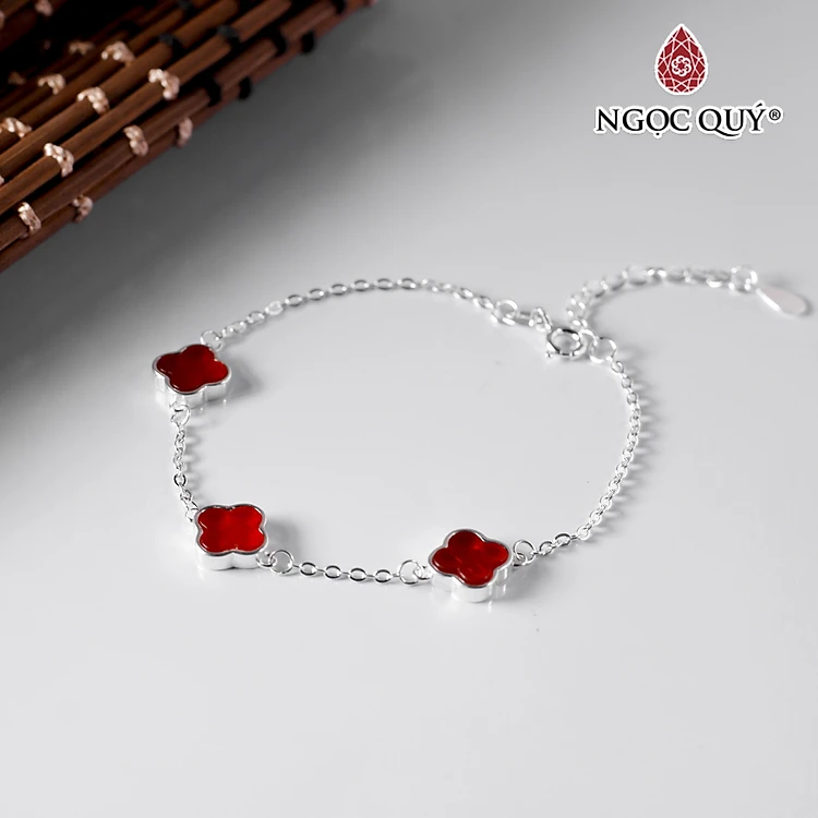 Lắc bạc cỏ 4 lá có tăng đơ dày 17~20cm hoa 8mm - Ngọc Quý Gemstones