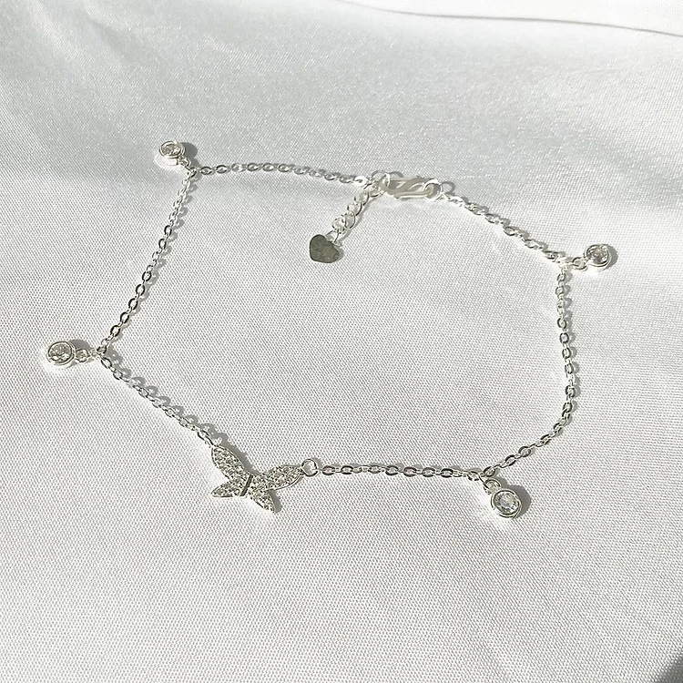 Lắc chân bạc 925 butterfly treo tiny đính pha lê xinh xắn dễ thương Dế Bạc – LC4392