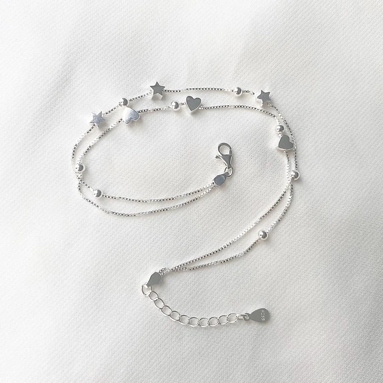 Lắc chân bạc 925 dây đôi gắn sao và bi xinh xắn nhẹ nhàng Dế Bạc - LC4095 - 2
