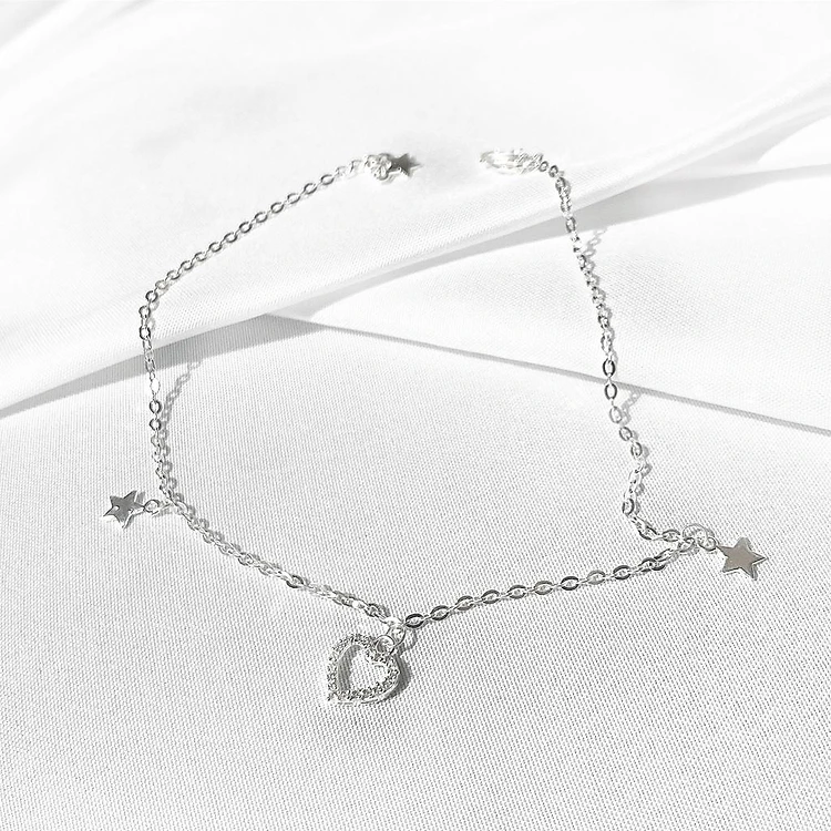 Lắc chân bạc 925 treo tim treo sao xinh xắn dễ thương Dế Bạc – LC4369
