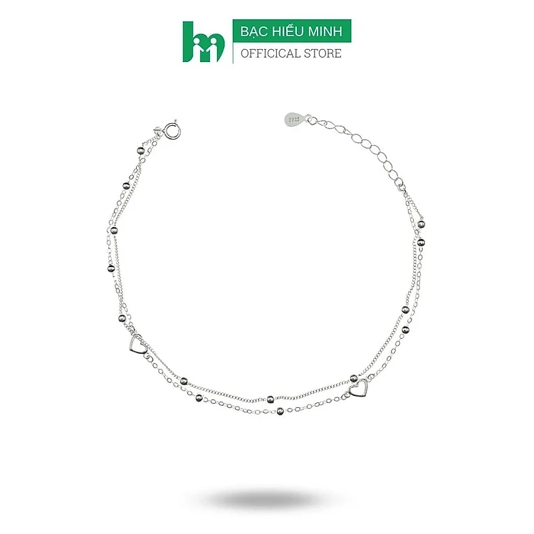 Lắc Chân Nữ Bạc 925 Dây Kép Mix Bi Tròn Bạc Hiểu Minh LC241