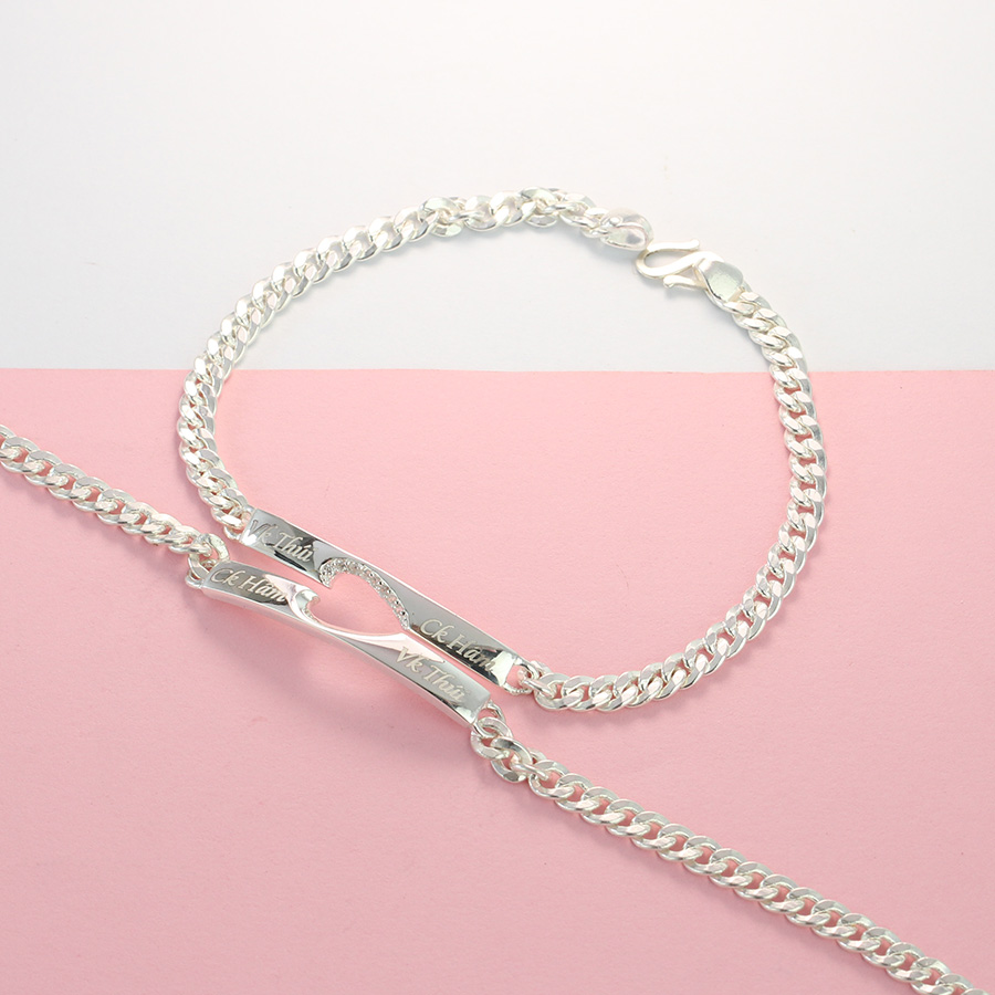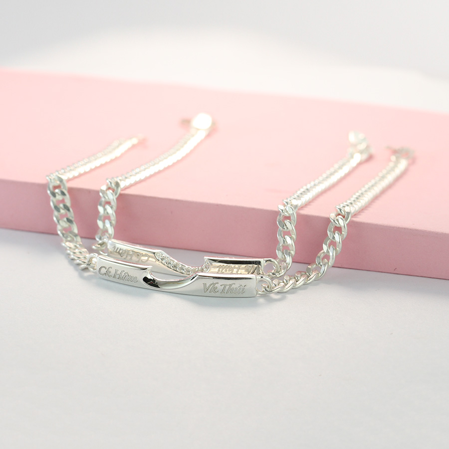 Vòng tay đôi bạc, lắc tay cặp bạc được làm từ chất liệu bạc cao cấp 925
