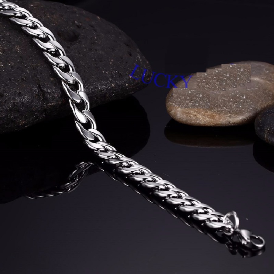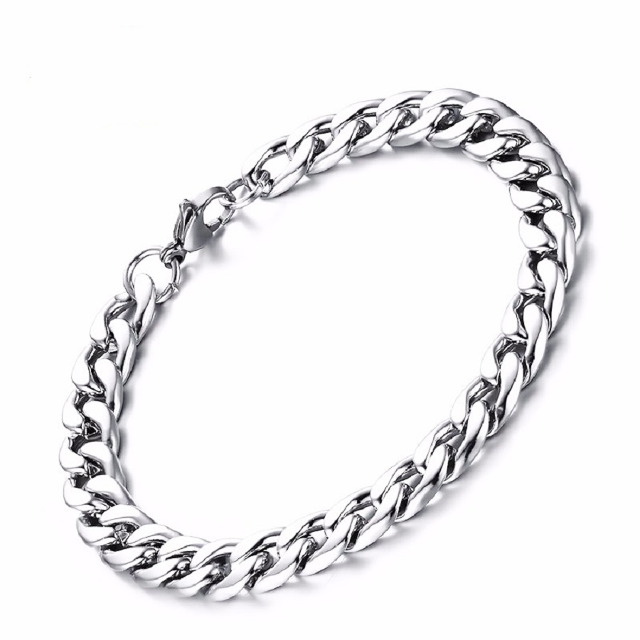 Lắc tay nam chuỗi xích lớn thời trang trắng sáng vĩnh viễn không đen