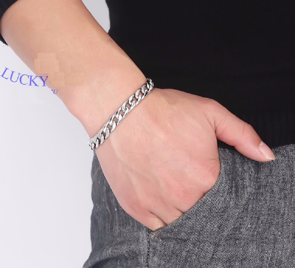 Màu sắc trắng sáng giúp tôn thêm đẳng cấp sang trọng cho bạn khi sở hữu chiếc lắc tay nam chuỗi xích lớn thời trang này