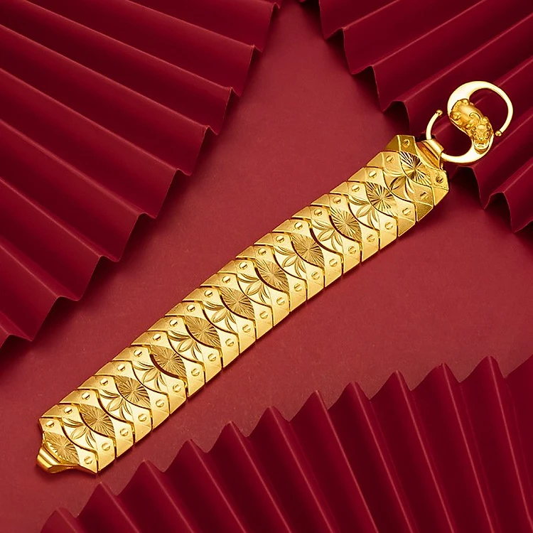 Lắc tay nam to bản mạ 24k hoa văn sọc khóa tỳ hưu cao cấp A3