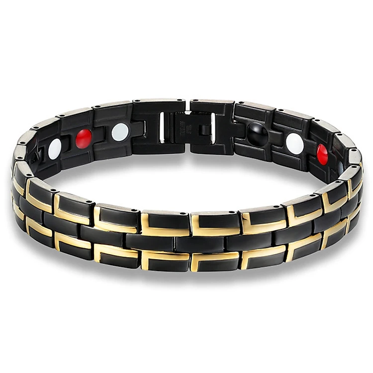 Lắc tay nam - Vòng tay nam thép 316L đính hạt đá Germanium, Magnet, Far Infrared và Nagetin Ion- NV100