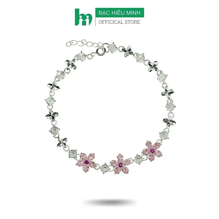 Lắc Tay Nữ Bạc Hiểu Minh LTU524 Hoa 5 Cánh Màu Hồng