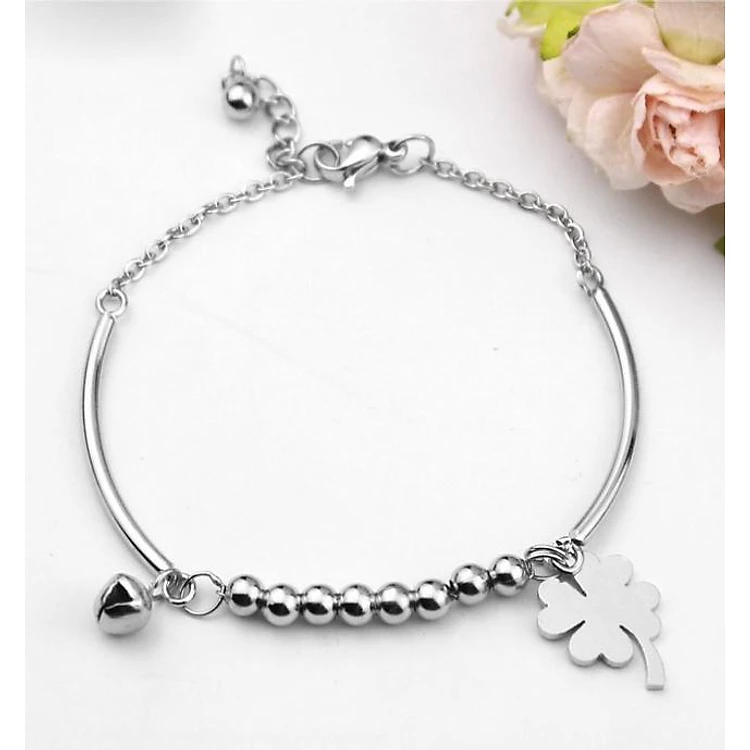 Lắc tay nữ inox cỏ bốn lá may mắn cách điệu chuông LT374