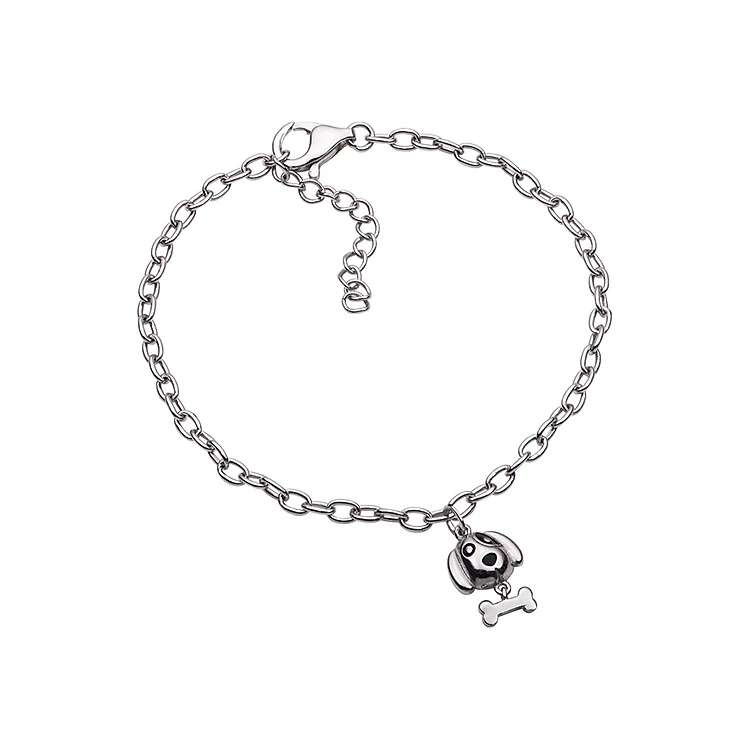 - Bên cạnh chất lượng, kiểu dáng của lắc tay chính là điểm nhấn giúp cho set đồ bé thêm xinh xắn, đáng yêu. Lắc tay được thiết kế với dây đan kiểu chữ cong kết hợp với mặt dây hình chú chó gặm xương khá đáng yêu và ngộ nghĩnh. Thú vị hơn nữa là mắt và mũi chú chó được làm nổi bật với màu sơn đen ấn tượng, làm tăng lên vẻ đẹp sinh động cho sản phẩm.