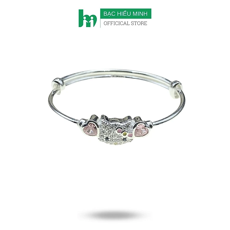 Lắc Tay, Vòng Tay Cho Bé Bạc Ta Nguyên Chất S99 Mèo Kitty Hồng Xinh Chính Hãng Bạc Hiểu Minh LTE555