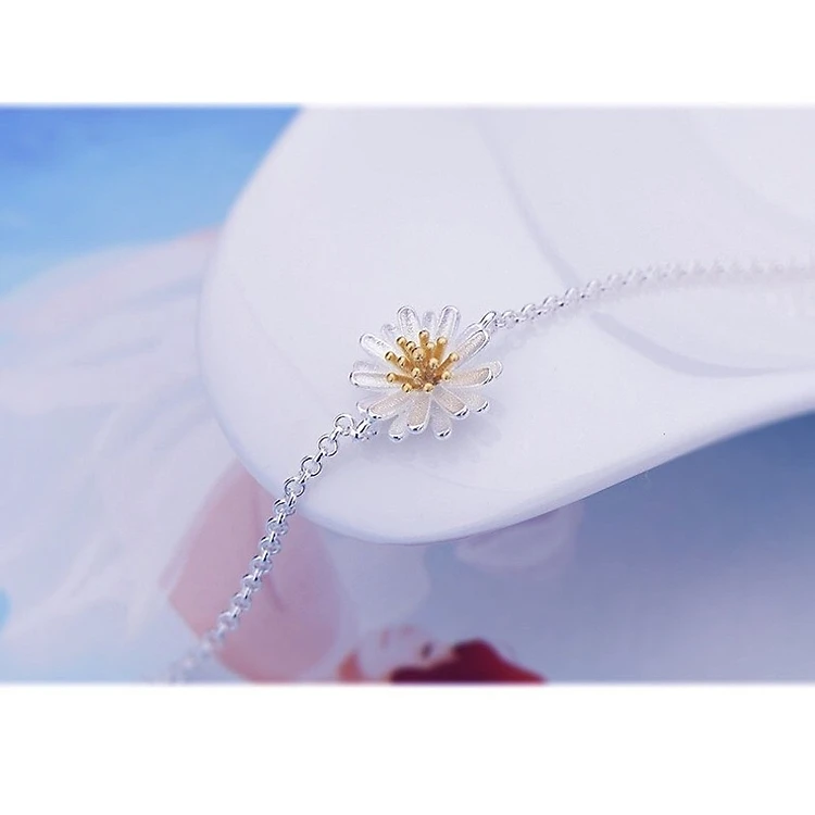 Cùng với sự kết hợp họa tiết của hoa cúc họa mi, đã ra đời chiếc lắc tay đơn giản nhưng rất xinh xắn với hình ảnh từ hoa cúc họa mi này. Một thứ tình yêu tuyệt đối chân thành, giản dị, không vẩn đục, mong mỏi những người mình yêu thương luôn được hạnh phúc mãi mãi. Đây chính là ý nghĩa tượng trưng cho loài hoa này.