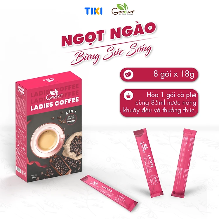 Ladies Coffee Goce - Cafe Nữ hòa tan 3 trong 1 - 144g (8 gói x 18g)