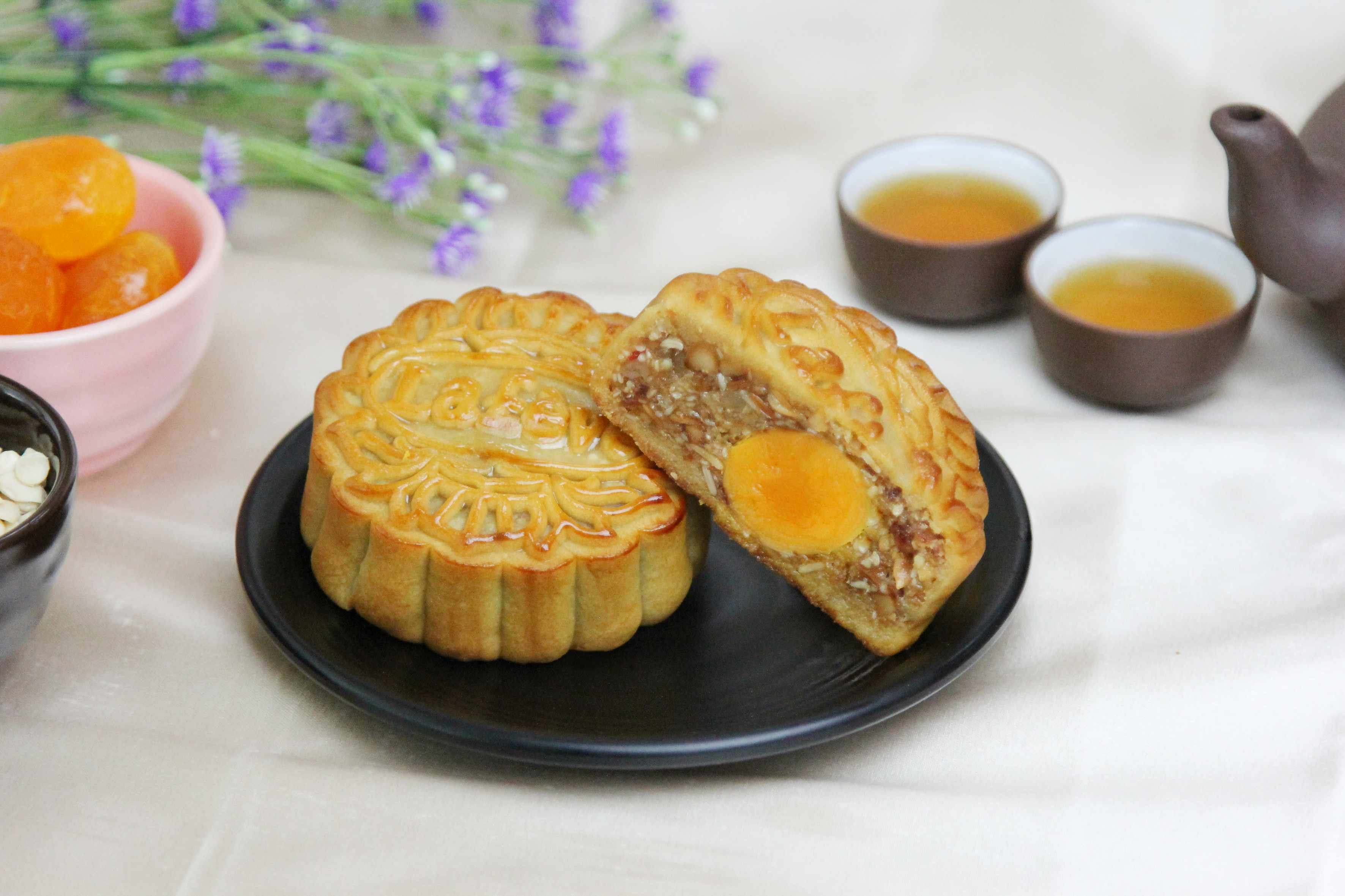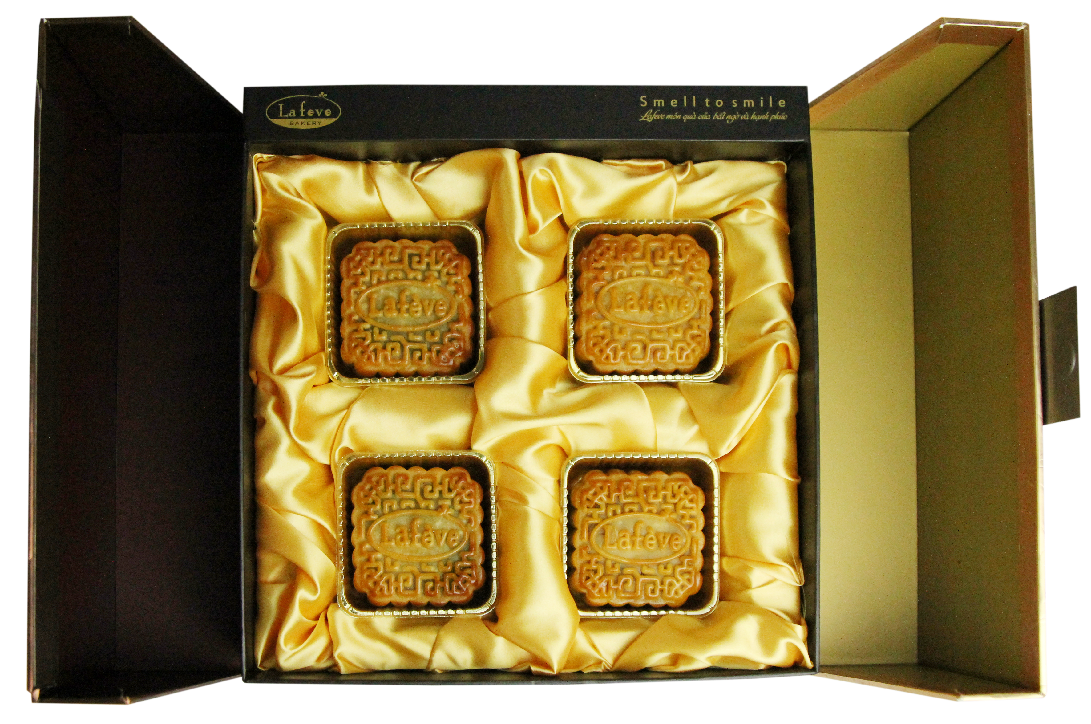 + Hộp bánh trung thu 04 bánh: Nhân Hạt Sen 160g + Nhân Thập Cẩm 160g + Nhân Đậu Đỏ 160g + Nhân Đậu Xanh 160g