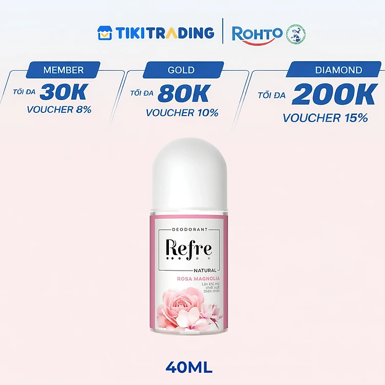 Lăn khử mùi chiết xuất thiên nhiên Refre Natural Rosa Magnolia – Hồng Mộc Lan 40ml