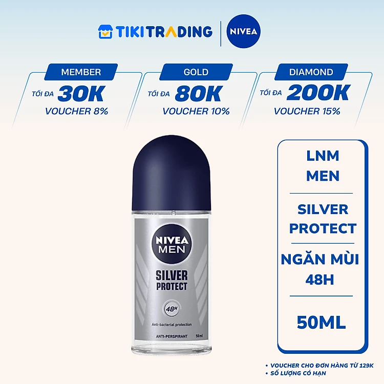 Lăn Ngăn Mùi NIVEA MEN Silver Protect Phân Tử Bạc Giảm 99.9% Vi Khuẩn Gây Mùi (50ml) - 83778