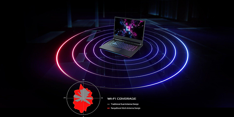 Công nghệ ROG RangeBoost đảm bảo tín hiệu Wi-Fi ổn định nhất có thể cho ASUS ROG Strix G G731-UEV140T. Thuật toán đặc biệt của RangeBoost đánh giá cường độ tín hiệu từ bốn ăng-ten bên trong và chọn cặp ăng-ten tốt nhất để sử dụng cho vị trí của bạn, nhờ đó giảm thiểu điểm chết và tăng tầm thu không dây lên thêm đến 30%. Khi kết hợp với Intel 802.11ac (2x2) Gigabit Wi-Fi mới nhất với băng tần không dây tối đa lên tới 1,7Gbps, bạn có thể kết nối và chơi game tốc độ cao hầu như ở mọi nơi với chiếc laptop gaming này.