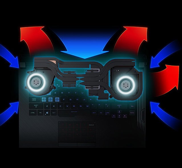 Triết lý thiết kế Hệ thống làm mát thông minh của ROG kết hợp giữa các tính năng phù hợp với cài đặt hệ thống để đảm bảo trải nghiệm tốt nhất trong từng tình huống. ASUS ROG Strix G G731-UEV140T tăng cường cho ngoại thất thông thoáng bằng mô-đun tản nhiệt tự làm sạch, đẩy bụi bẩn ra bên ngoài để kéo dài tuổi thọ. Các quạt kép cánh chữ N quay 83 cánh quạt để tăng cường lưu thông khí, đồng thời các lá tản nhiệt siêu mỏng giúp mở rộng diện tích bề mặt thoát nhiệt. Phần mềm ROG Armoury Crate chuyển đổi liền mạch giữa các chế độ vận hành để tối ưu hóa hiệu năng và độ ồn theo từng tác vụ.