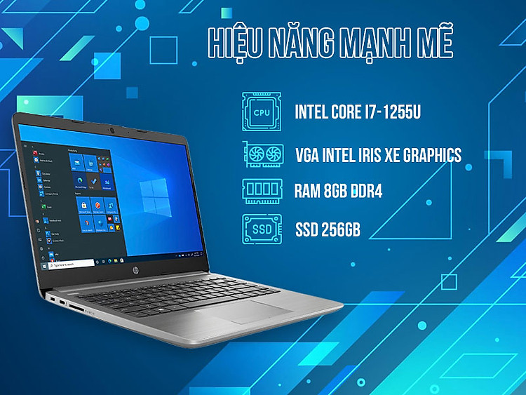 HP 240 G9 6L1Y4PA được trang bị bộ vi xử lý Intel Core i7-1255U 10 nhân 12 luồng cùng bộ nhớ đệm 12MB giúp bạn khởi động hệ thống nhanh, giảm tiêu thụ năng lượng ít.