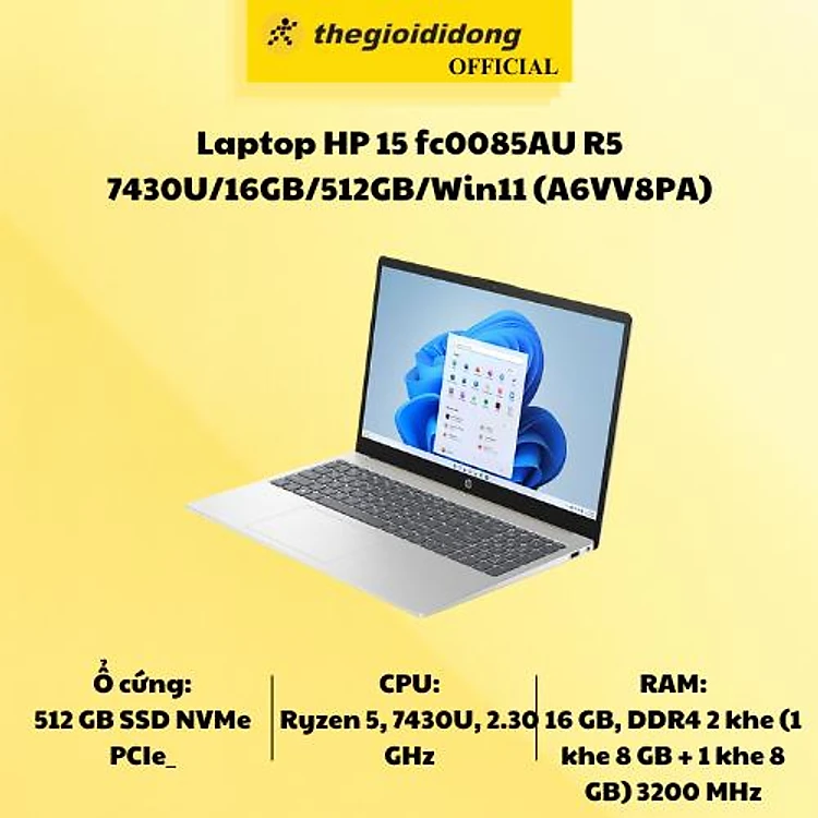 Nổi bật và quá thân quen trong phân khúc laptop học tập - văn phòng giá rẻ, chiếc Laptop HP15 fc0085AU R5 7430U/16GB/512GB/Win11 (A6VV8PA) - Hàng Chính Hãng với cấu hình ổn định, vận hành hiệu quả mọi tác vụ từ làm việc đến giải trí đa phương tiện. Máy hội tụ đầy đủ các yếu tố để trở thành bạn trợ thủ lý tưởng cho người dùng.