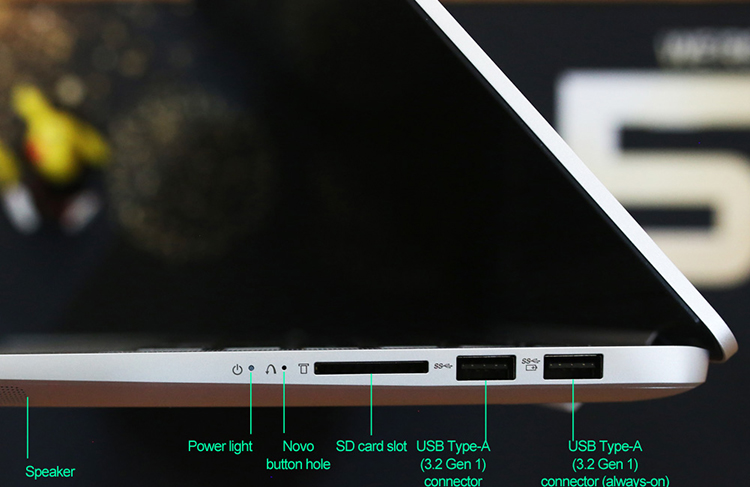 Để phục vụ tối đa cho các nhu cầu đa dạng của người sử dụng, Laptop Lenovo IdeaPad 5 Pro 14ACN6 82L700L7VN được trang bị khá đầy đủ các cổng kết nối bao gồm: 1x USB 3.2 Gen 1; 1x USB 3.2 Gen 1 (Always On); 2x USB-C 3.2 Gen 1 (support data transfer, Power Delivery 3.0 and DisplayPort 1.4); 1x HDMI 1.4b; 1x Headphone / microphone combo jack (3.5mm); 1x Card reader.