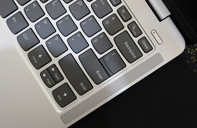 Phía bên cạnh trên của máy được bố trí đầy đủ Webcam IR 720p, đèn LED và bộ phận thu âm để đáp ứng nhu cầu gọi video, học tập và hội họp trực tuyến của người dùng.