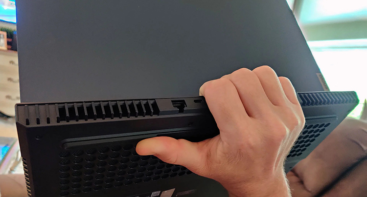 Điều cuối cùng cần đề cập là kết nối nguồn độc quyền tiêu chuẩn của Lenovo cũng nằm ở mặt sau. Đây có lẽ là kết nối nguồn yêu thích của tôi trên bất kỳ máy tính xách tay nào có sẵn. Nó dễ dàng kết nối, mạnh mẽ và có thể đảo ngược. Và sợi dây nằm gọn ở phía sau.