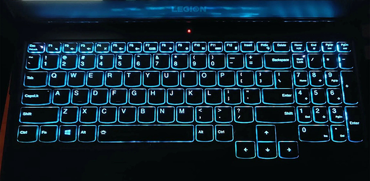 Legion 5 2021 15ACH6H (82JU00QEVN) có một bàn phím đầy đủ và bàn di chuột có kích thước vừa phải, chúng ta sẽ thảo luận thêm về vấn đề này ngay sau đây. Phía trên bàn phím là nút nguồn.