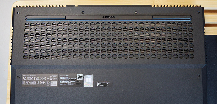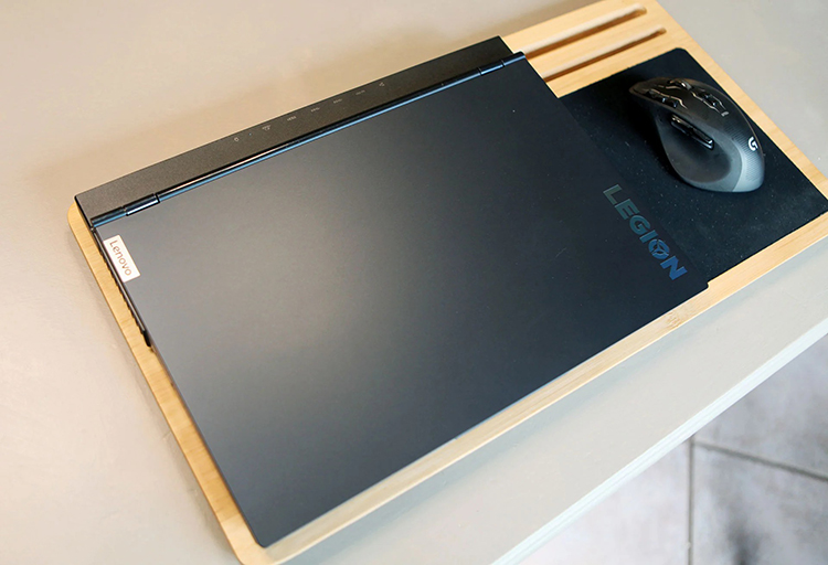 Nắp là một miếng nhựa mịn và dày. Có một logo Lenovo nhỏ ở góc dưới và một logo Legion ở góc đối diện- đối xứng một cách hoàn hảo. Logo Legion có thể thay đổi màu sắc tùy thuộc vào góc ánh sáng. Nhìn tinh tế nhưng rất tuyệt.