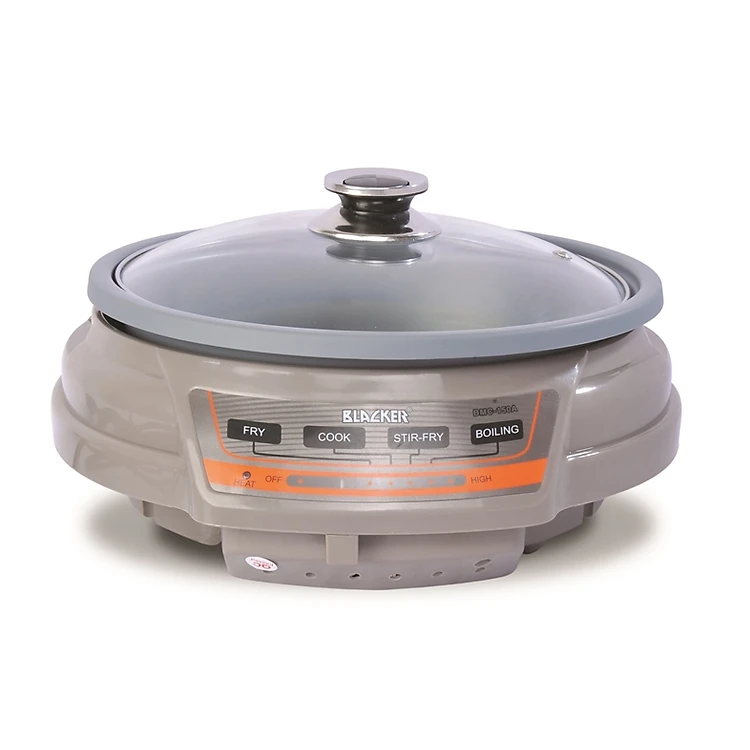 Nồi lẩu điện Blacker BMC-150A có công suất 1300W, dung tích 3.5 lít, lòng nồi phủ lớp chống dính, sức nóng được dàn trải đều đảm bảo nồi lẩu luôn nóng sốt suốt bữa ăn. Thanh điều chỉnh nhiệt độ tùy chọn, dễ dàng điều chỉnh theo nhu cầu sử dụng, có mức nóng nhất để nồi lẩu nhanh sôi lúc bắt đầu và mức duy trì độ nóng vừa phải để món ăn luôn nóng hổi khi dùng bữa. Ngoài ra bạn còn có thể sử dụng Blacker BMC-150A để chiên, xào, nấu canh, hay đun nước.
