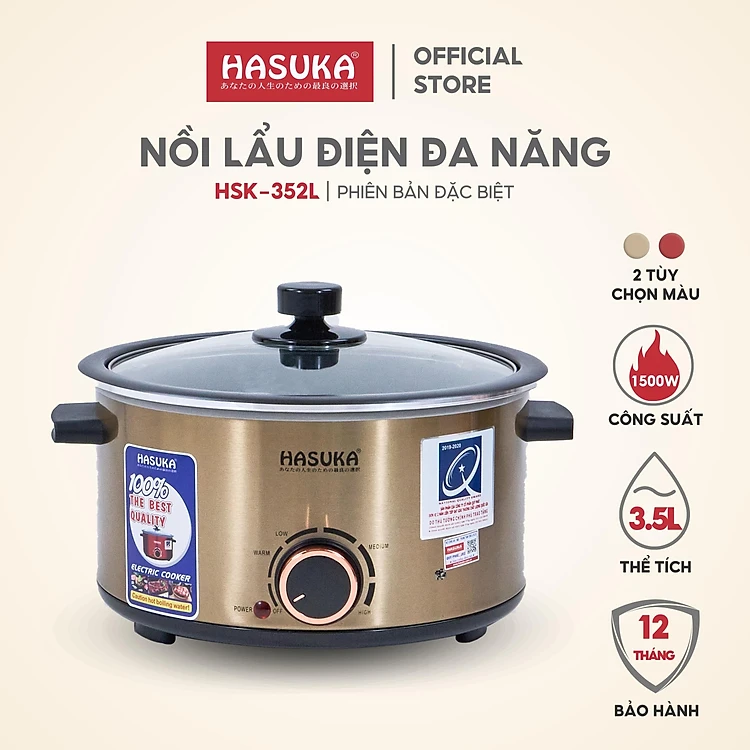 Lẩu điện đa năng HASUKA HSK-352L dung tích 3.5L, công suất 1500W chống dính, đa chức năng - HÀNG CHÍNH HÃNG (Bảo hành 12 tháng)