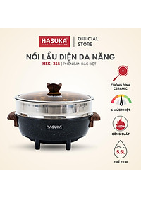 Lẩu điện đa năng HASUKA HSK-355 công suất 1500W, dung tích 5,5L chống dính, đa chức năng nấu nướng (Bh 12 tháng) - HÀNG CHÍNH HÃNG