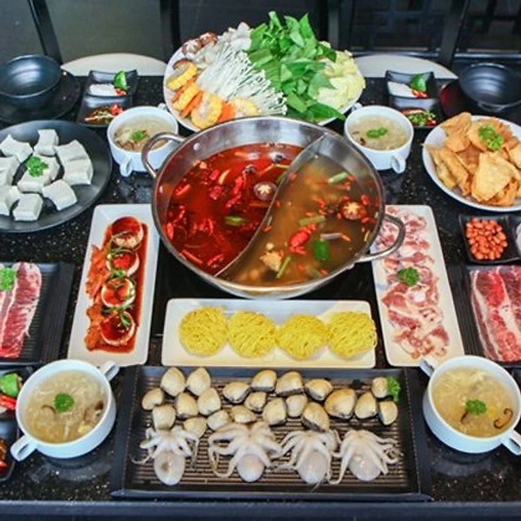 Món nhúng lẩu đa dạng từ Ba chỉ bò Mỹ mềm ngọt, Hải sản tươi sống và sườn sụn giòn dai, ngoài ra còn có các loại rau nấm thanh mát cho bữa ăn cân bằng dinh dưỡng.
