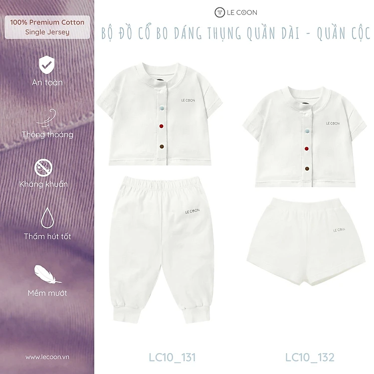 LE COON | Bộ Đồ Cổ Bo Dáng Thụng Quần Dài- Quần Cộc | COOL | 0-3 tuổi