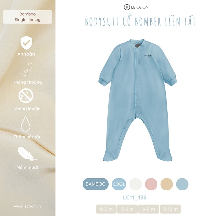 LE COON | BODYSUIT CỔ BOMBER LIỀN TẤT | Vải COOL mỏng mát | 0-9 tháng
