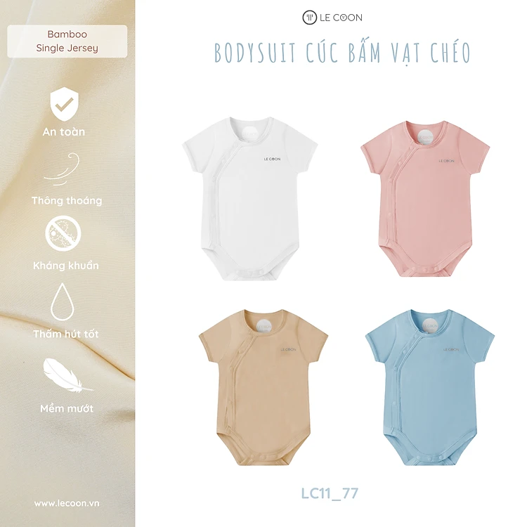 LE COON | Bodysuit Cúc Bấm Vạt Chéo Cộc Tay | Vải COOL Mỏng Mát | 0-12 tháng