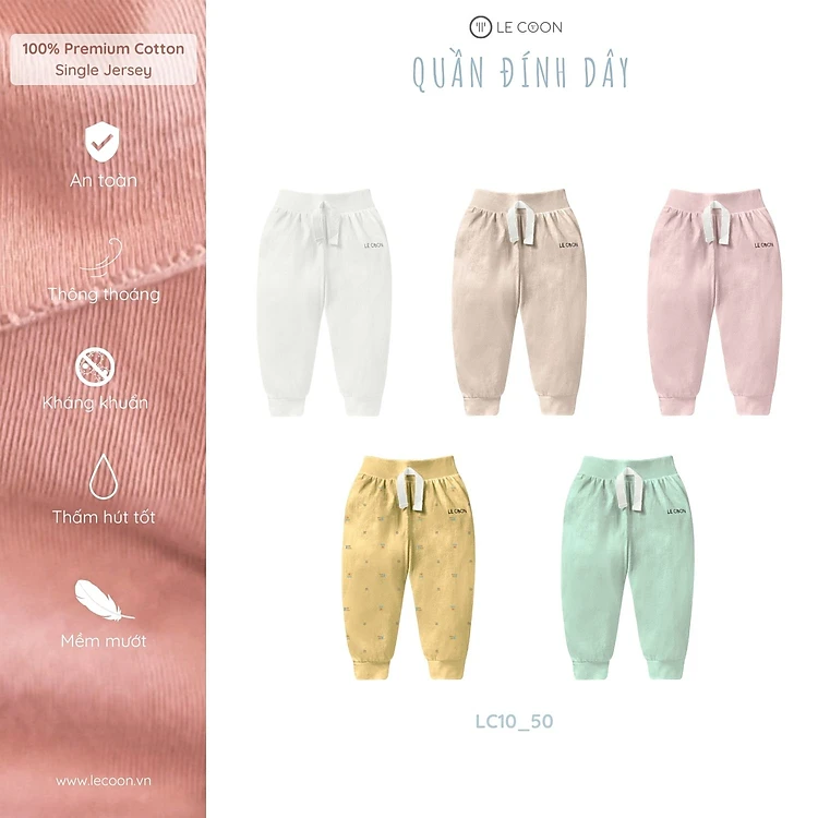 LE COON | Quần Đính Dây | Vải COOL mỏng mát | 0-12 tháng