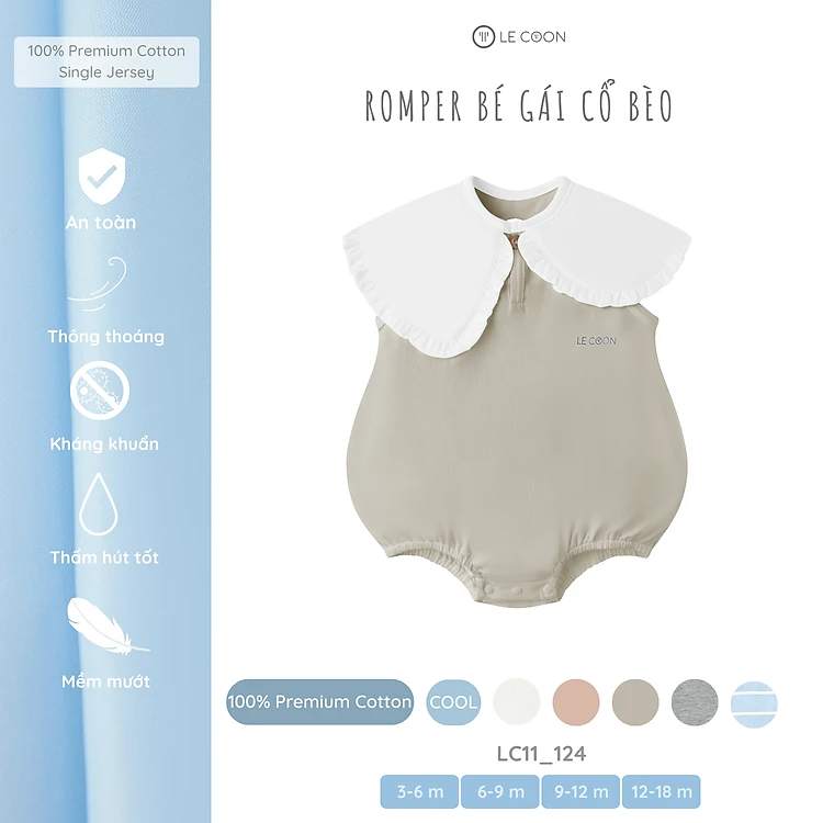LE COON | Romper Bé Gái Cổ Bèo | COOL | 3-18 tháng