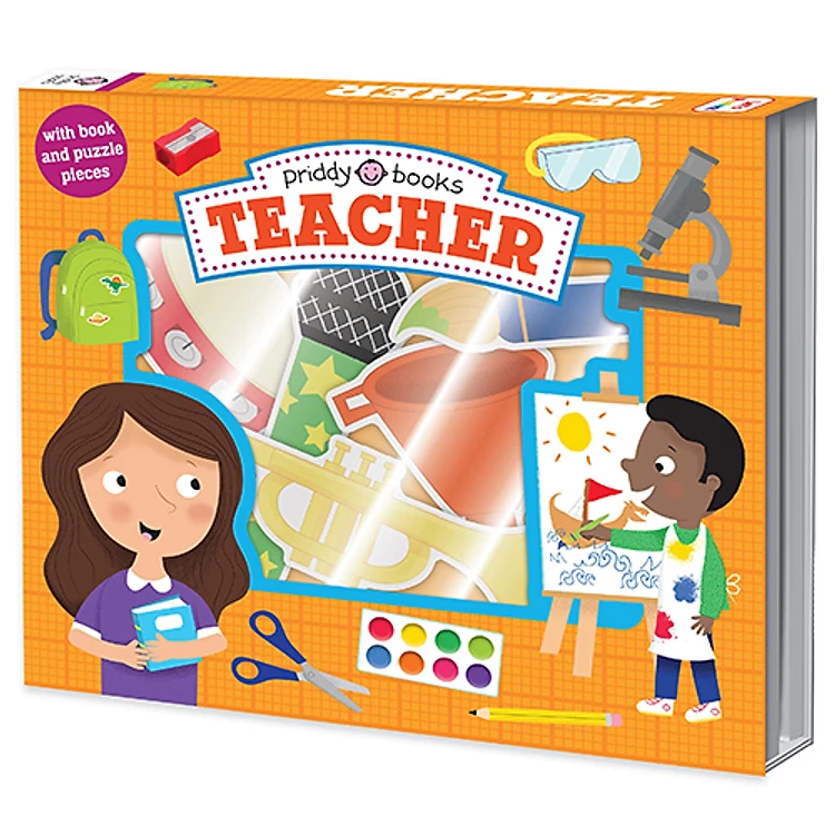 Fantastic creative play pack for budding teachers with a board book and 15 sturdy cardboard pieces in a plastic clamshell.