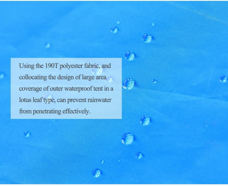 • Chất liệu vải chống nước 190T PU1500 polyeste đường may ép keo lớp trong lưới nhiều tiêu chuẩn B3 rất thoáng mát và chống được côn trùng nhỏ nhất như con bù mắt và muỗi