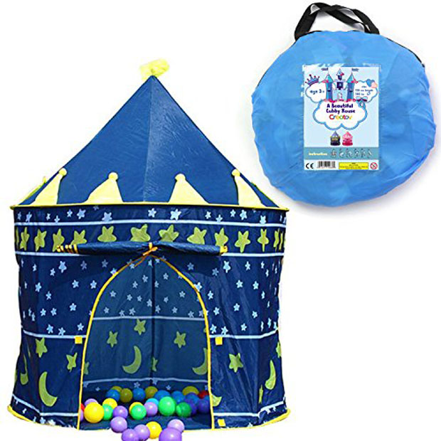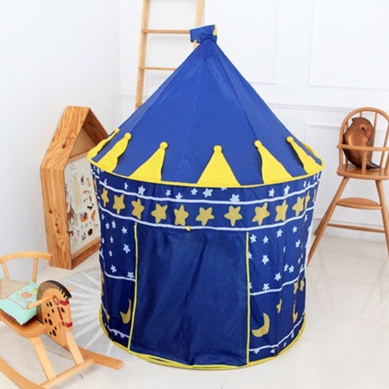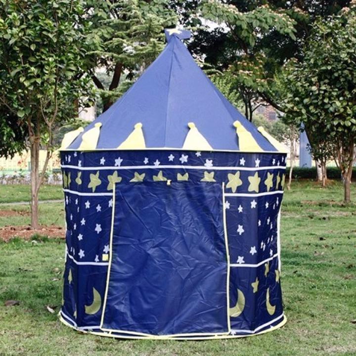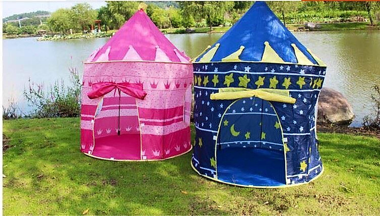 - Lều có hình dáng ngộ nghĩnh như một chiếc lâu đài cổ tích, màu sắc bắt mắt phù hợp với trẻ nhỏ.
