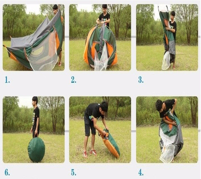 B4: Từ hình số 8 gập đôi lại thành hình tròn, cho vào bao lều cắm trại là xong.