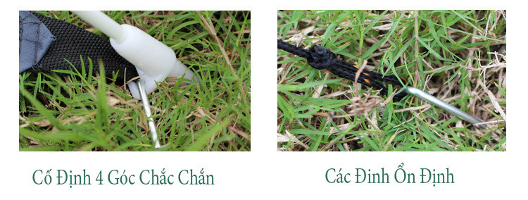 Sản phẩm có sẵn các phụ kiện cố định lều xuống đất khi thời tiết có gió hay mưa to.
