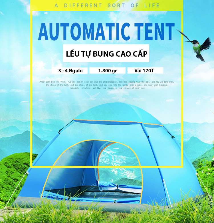 - Thiết kế thông minh chỉ cần mở túi đựng là lều tự bung ra mà không cần tốn công sức, mất thời gian cho việc lắp ráp như các dòng sản phẩm khác.