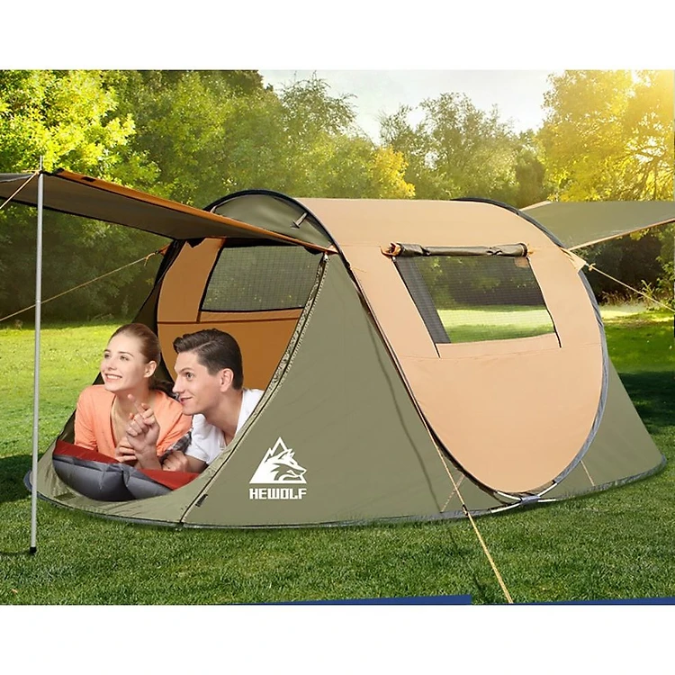 - Đây sẽ là sự lựa chọn không thể tuyệt vời hơn. Với thiết kế lò xo mở tự động 5-10s nhanh chóng, kèm 4 cửa thông thoáng, chất liệu dù thì vô cùng xịn ào kèm các thanh nhôm chống cửa lều.