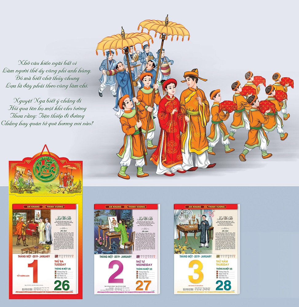 Bộ lịch Lục Vân Tiên gồm 2.080 câu thơ lục bát trong tác phẩm Lục Vân Tiên ( dựa theo bản của Vũ Đình Liên và Nguyễn Sỹ Lâm – NXB văn hóa ấn hành năm 1959, nhà xuất bản văn học in hành 1997), chia thành 365 đoạn tương ứng với mỗi ngày trong năm. Với mỗi đoạn trích sẽ có một bức ảnh minh họa, được họa sỹ Hữu Hiếu và các cộng sự dày công thực hiện, tạo thành một tác phẩm Lục Vân Tiên độc đáo với một diện mạo mới, trân trọng giới thiệu đến quý bạn đọc!. Đây là bộ lịch bloc được dày công thực hiện trong mấy năm trời của Lịch tết An Hảo. Mời Quý vị xem qua.