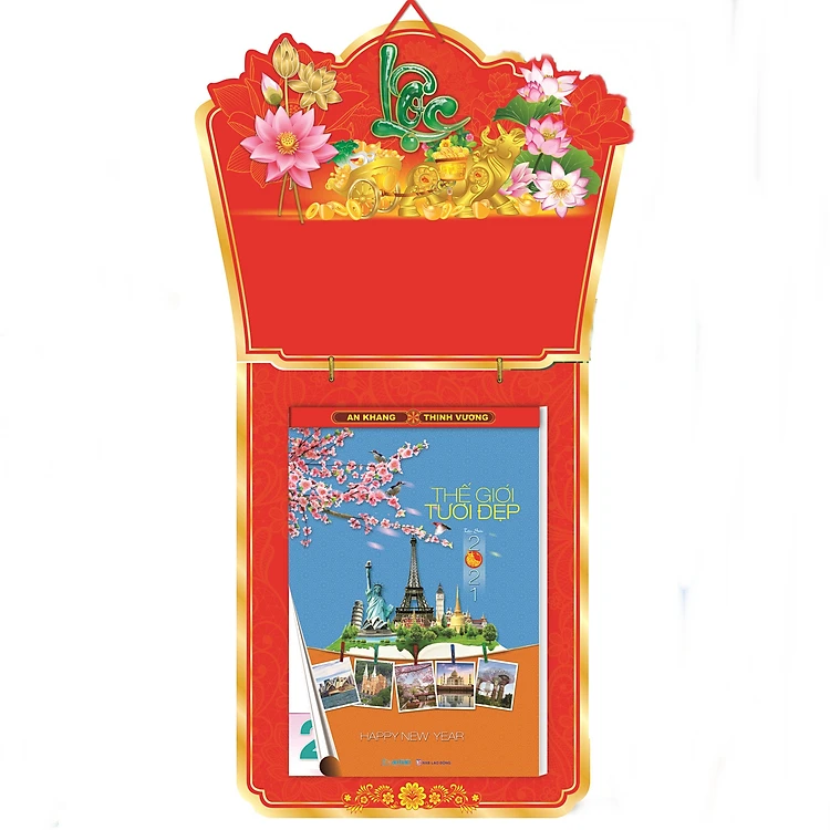 Bìa treo Metalize hologram 7 màu thực hiện theo công nghệ mới, ép nổi 3D. Trên bìa gắn chữ Lộc cẩm thạch
