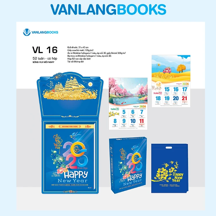 Lịch 2026 52 Tuần Có Hộp – Sống Vui Mỗi Ngày | Lịch Treo Tường Vanlangbooks | Mã: VL16