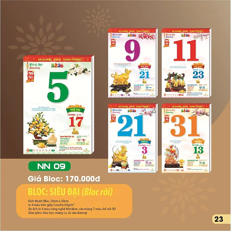 Lịch 2026 - Bloc Siêu Đại NN09 - Phong Thủy Tài Lộc (Bloc Rời 20x30cm)