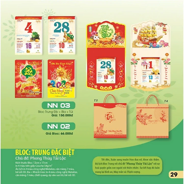 Lịch 2026 - Bloc Trung Màu Phong Thủy Tài Lộc (chỉ Bloc Rời)